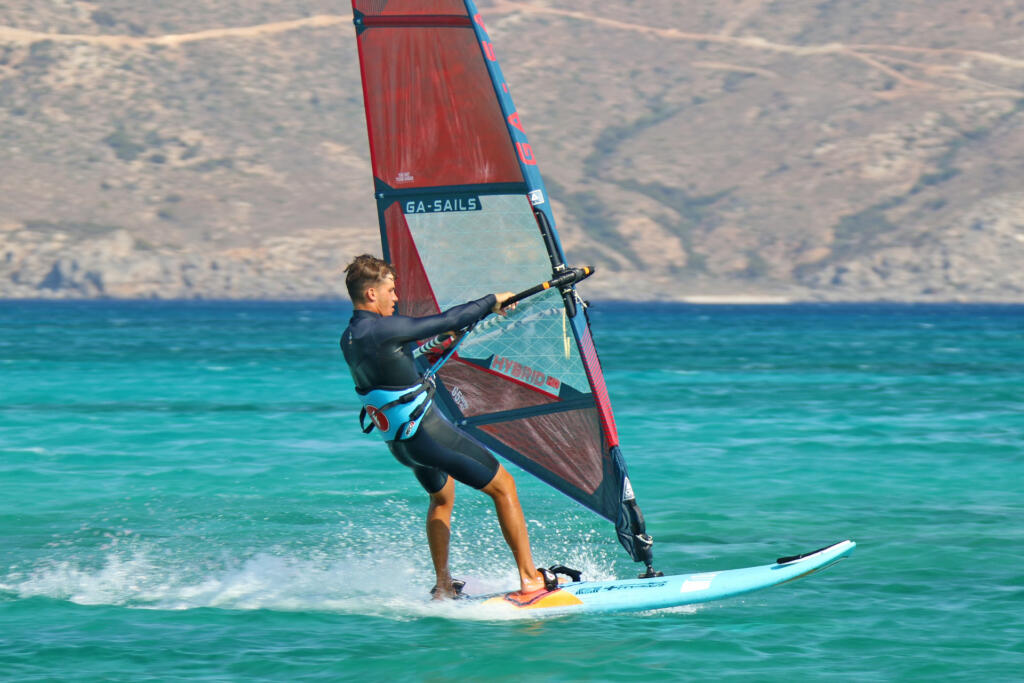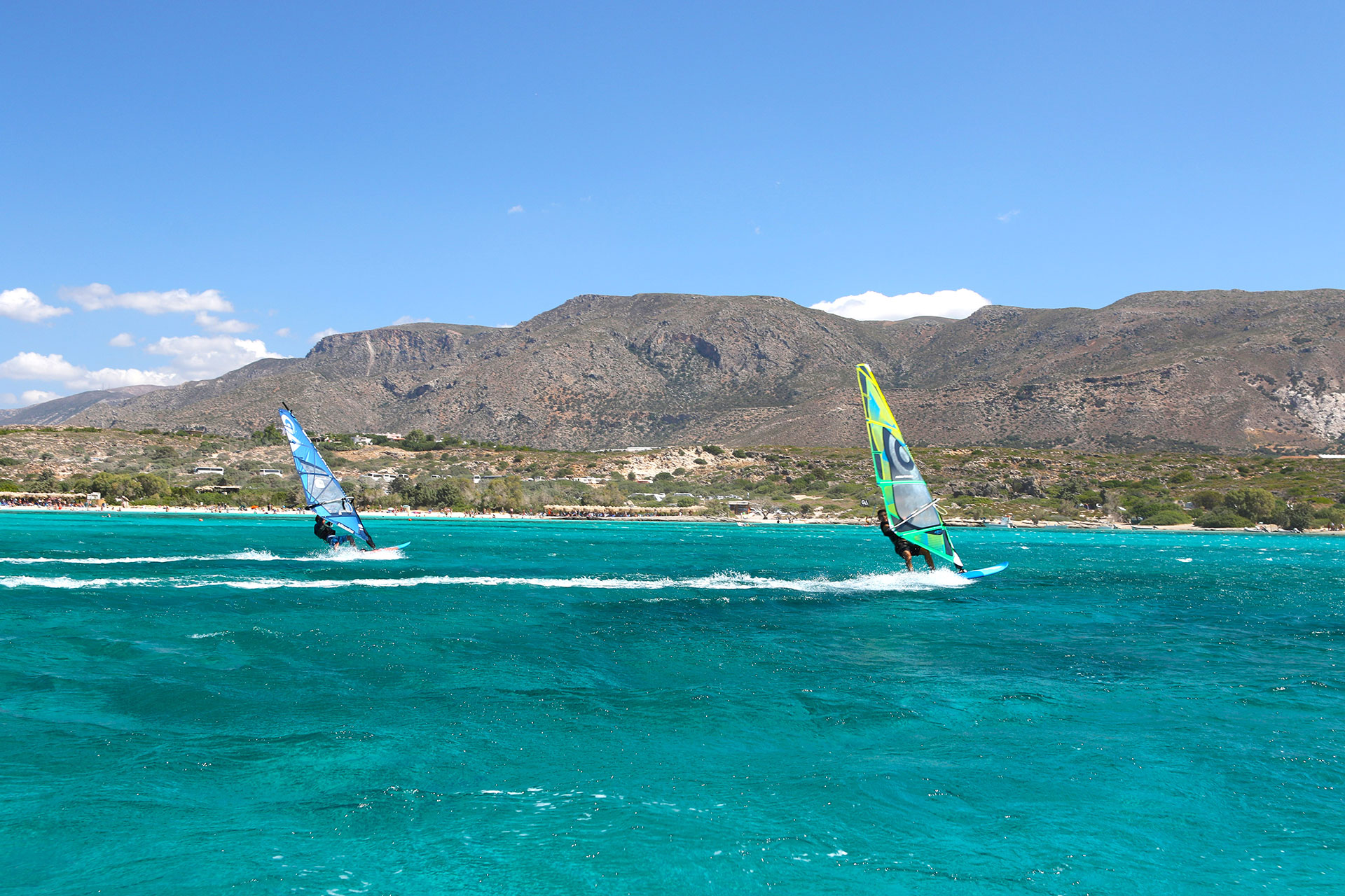 At the southwestern edge of Crete, Elafonisi stands out as a one-of-a-kind destination, famous for its crystal-clear, shallow waters and exotic scenery. With steady winds and flat conditions, it offers the perfect setting for windsurfing and wing foiling, ideal for all levels from beginners to advanced riders. Whether you’re here to learn or progress, Elafonisi delivers a safe, fun, and unforgettable experience on the water.