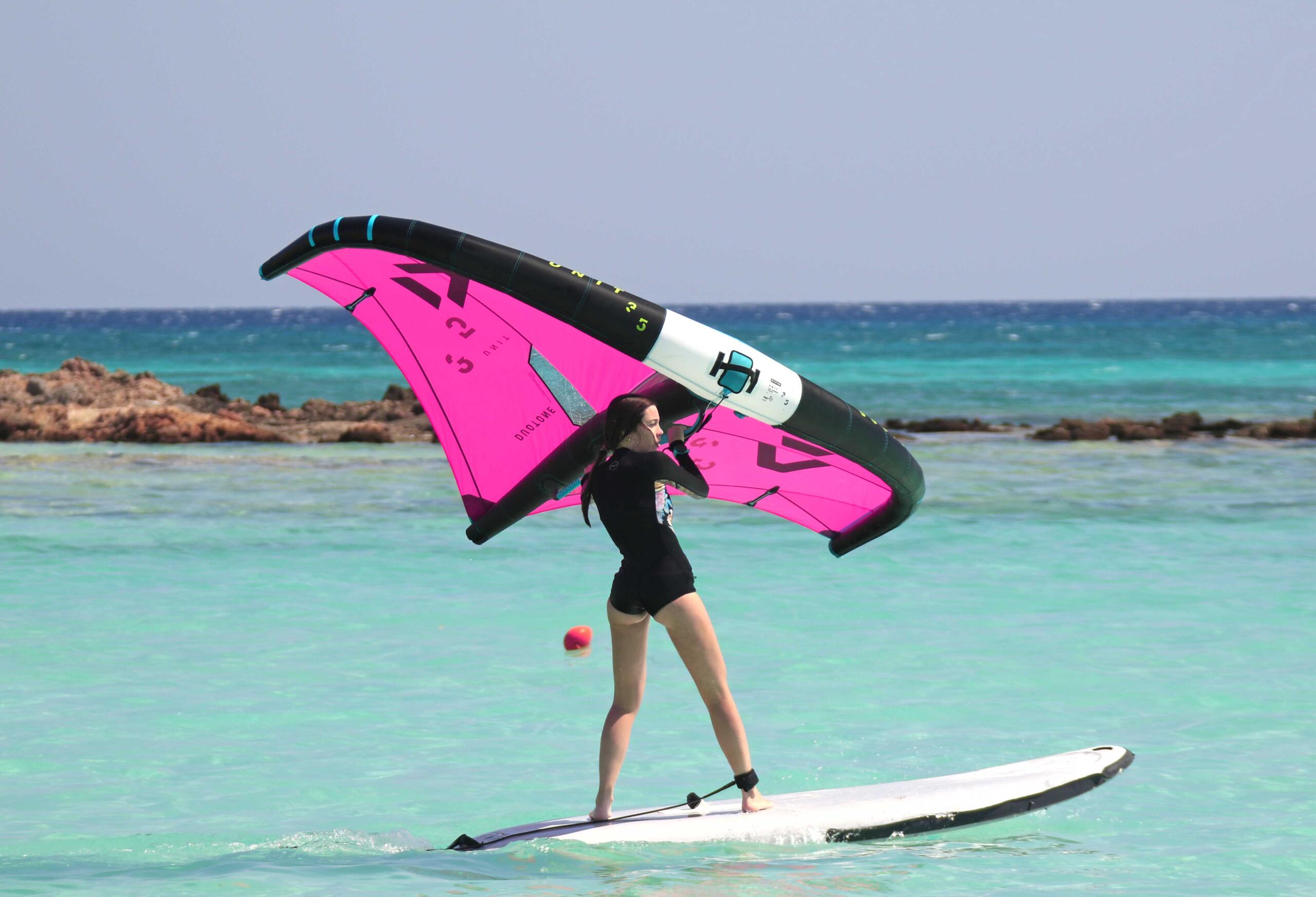 The WindTribe is based in Elafonisi, Crete’s southwest edge, where crystal-clear flat waters meet exotic vibes. A true hotspot for windsurfing and wing foiling, perfect for everyone