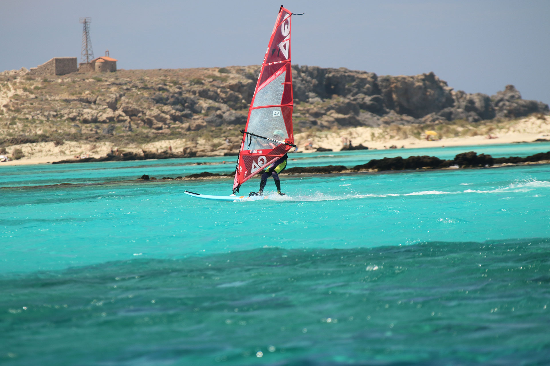Flat water and steady wind on the south side, ideal for freestyle, freeride, and slalom. Sails from 1.5 to 7.7 m² with high carbon masts, plus super light rigs for women and kids, perfect for all levels. We take care of the setup, so you can focus on riding.